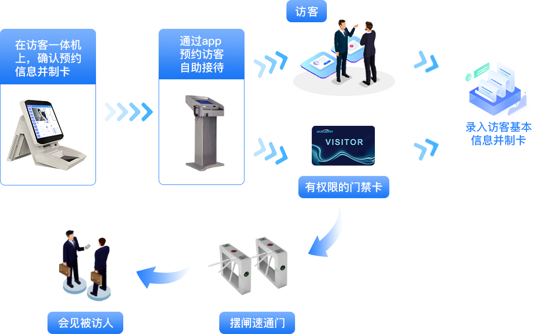 現(xiàn)有的訪客系統(tǒng)可對(duì)來訪人員進(jìn)行有效快捷登記管理,掌握并管理單位來訪人員的動(dòng)態(tài)。系統(tǒng)通過在出入口設(shè)置管理端實(shí)現(xiàn)對(duì)外來人員的到訪進(jìn)行管制,對(duì)于來訪人員,系統(tǒng)通過掃描終端對(duì)到訪人員所持身份證進(jìn)行登記,核發(fā)出入臨時(shí)卡,臨時(shí)卡權(quán)限由管理人員進(jìn)行分配,也可于人員通道、門禁系統(tǒng)、電梯系統(tǒng)集成使用,更進(jìn)一步的對(duì)訪客人員進(jìn)行區(qū)域管制。